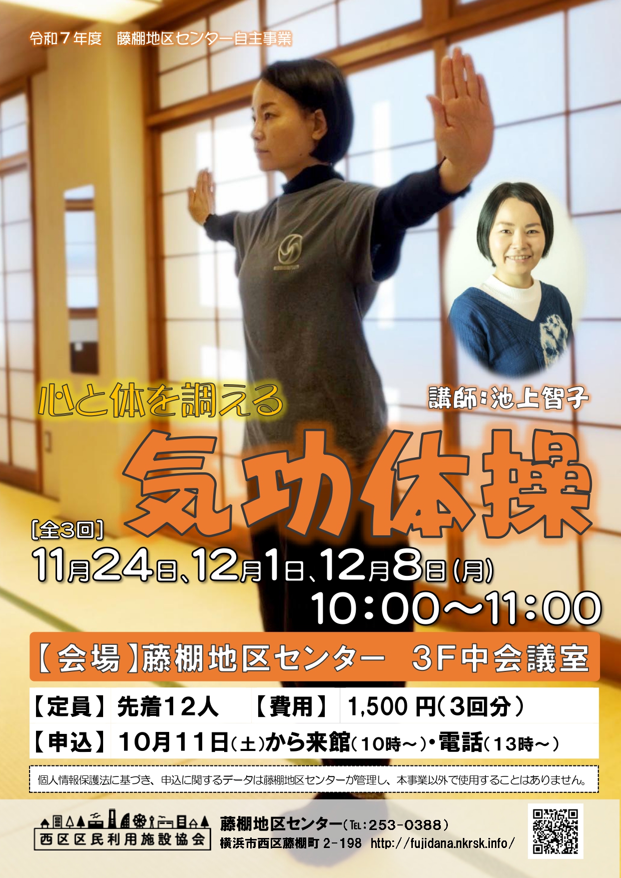 【11月24日、12月1日、12月8日(月曜日)開催】心と体を調える気功体操[全3回]