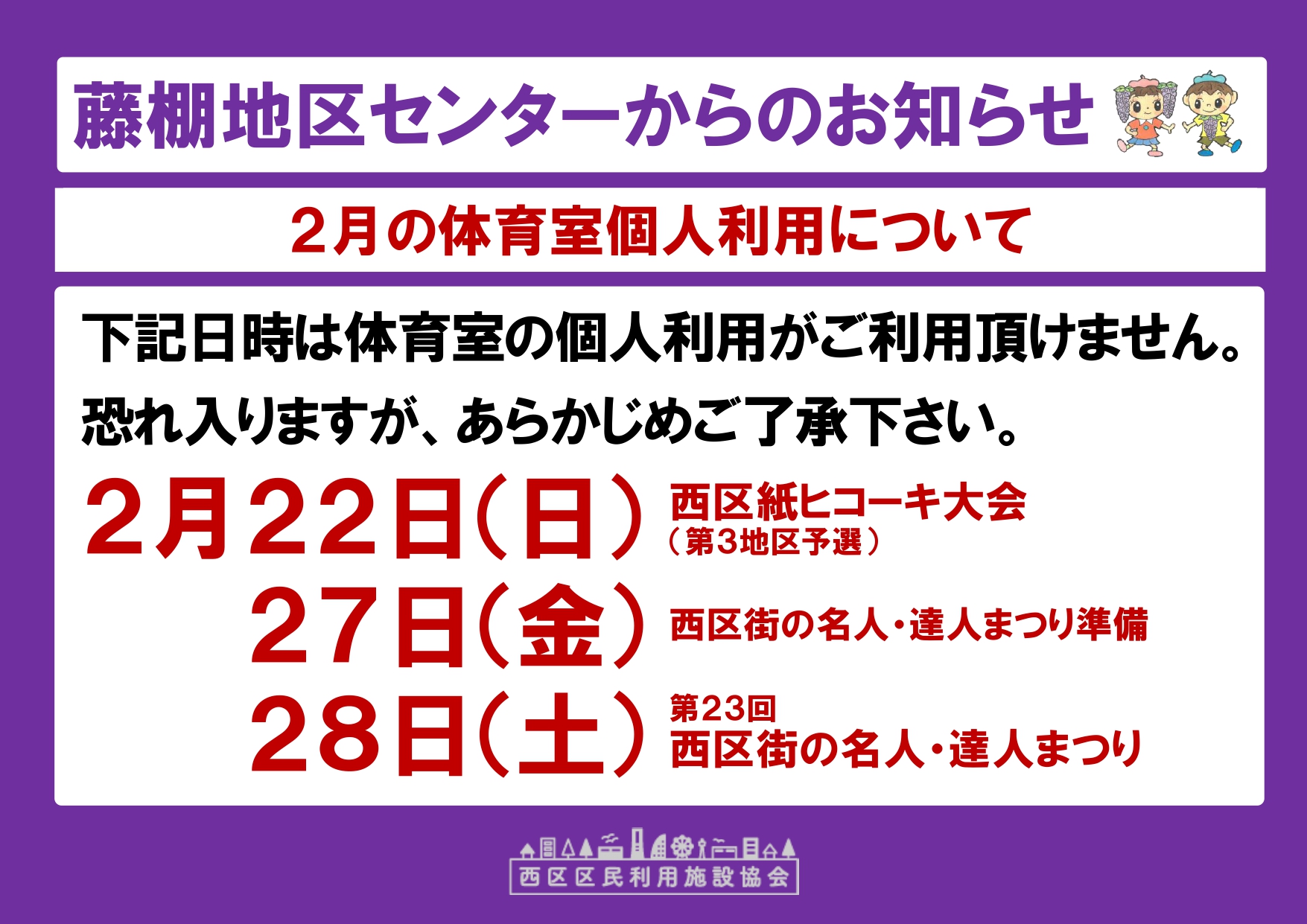 2月28日(土曜日)第23回西区街の名人・達人まつり開催のため